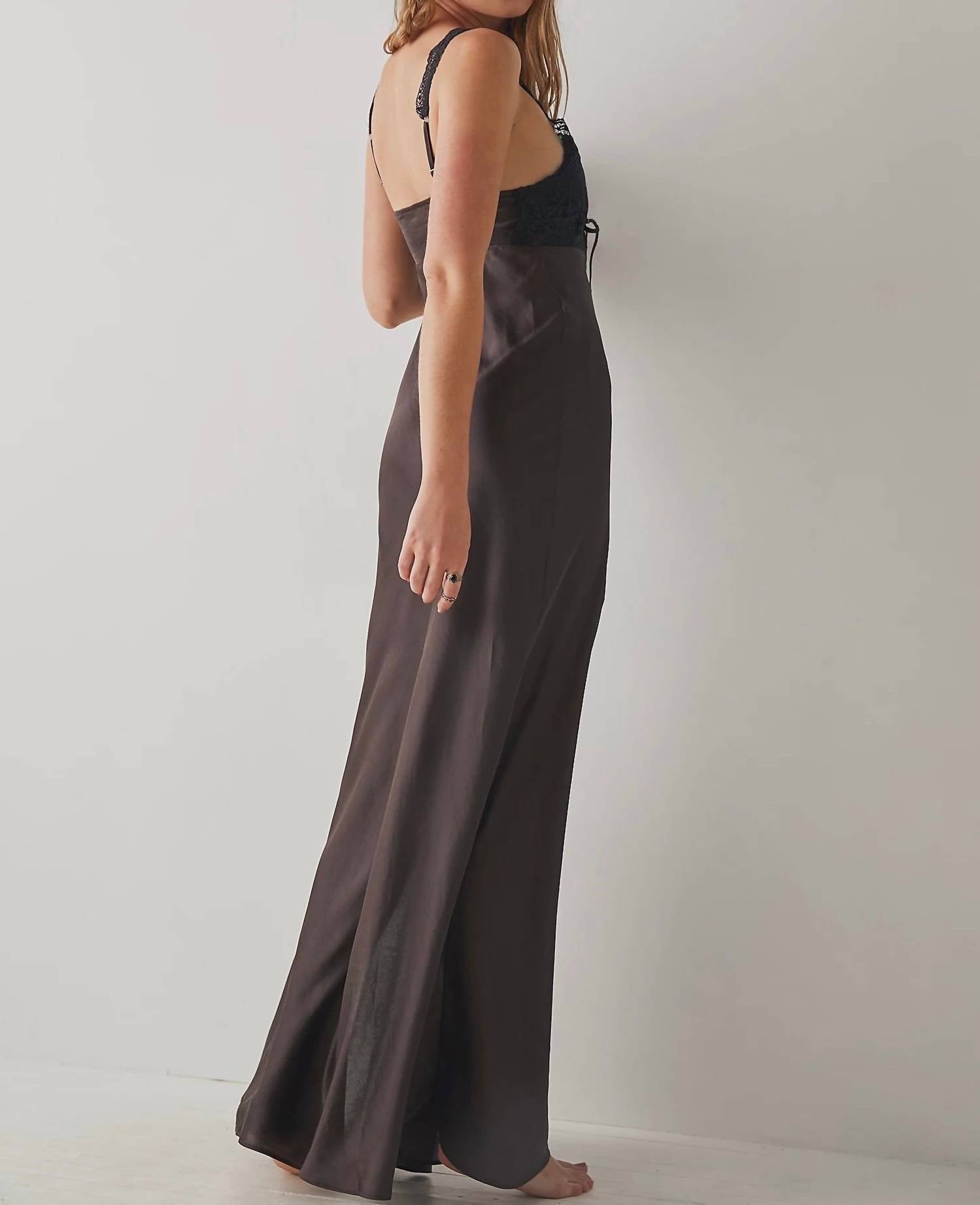 Made from luxurious lace, this maxi-length slip showcases sultry lace detailing at the bust and a daring slit at the leg. Ideal for a night out paired with heels or layered for a chic brunch ensemble. Designed for women with a solid pattern, this piece guarantees head-turning elegance.