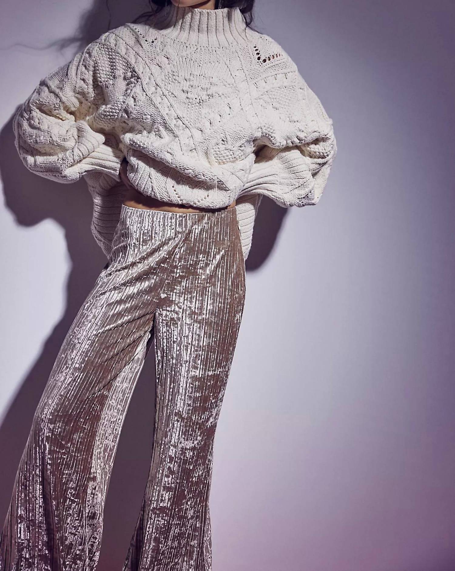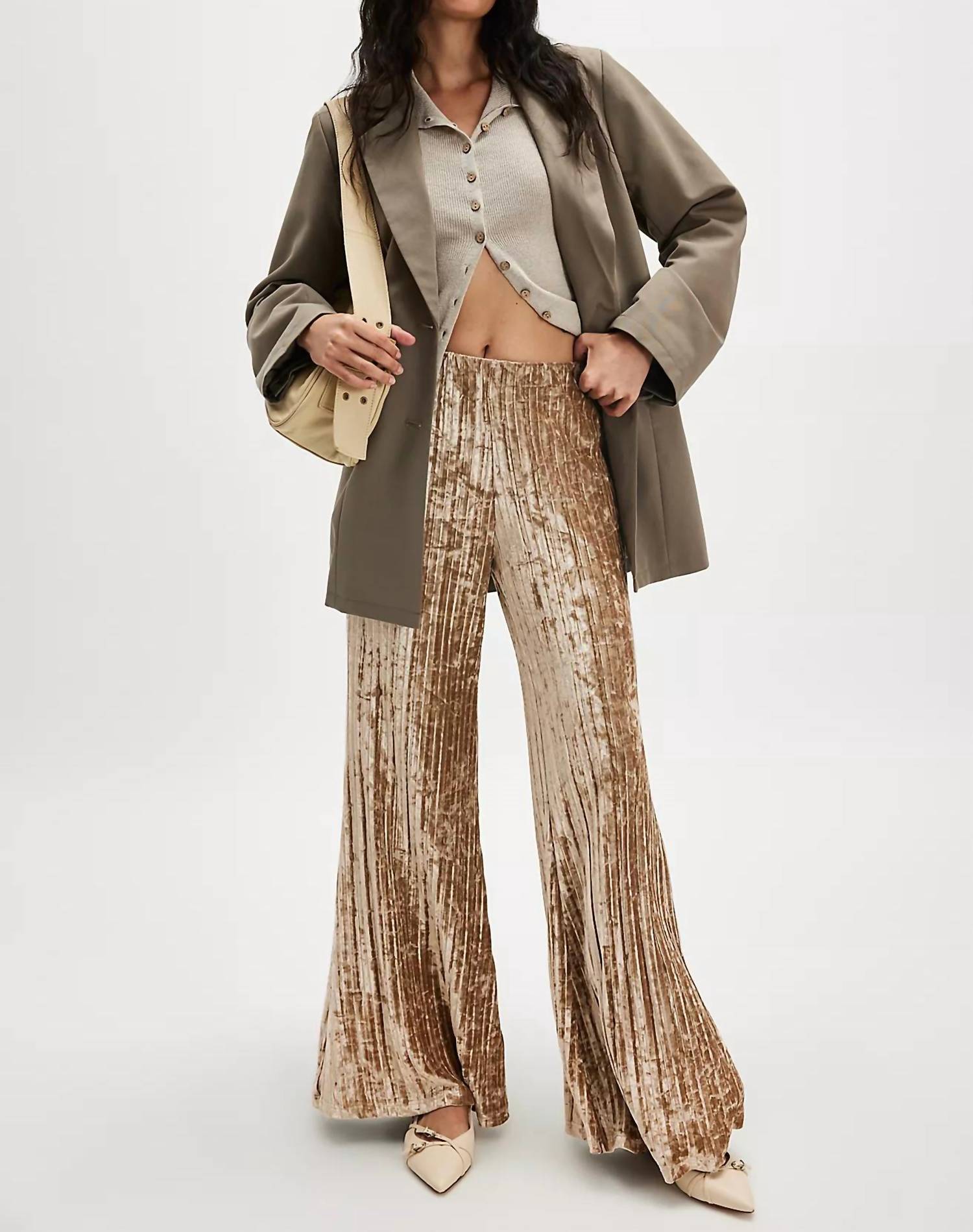 Introducing the Star Sign Velvet Pant by Free People, a wardrobe essential characterized by its luxurious texture and classic appeal. These black pants feature a high-rise, wide flare silhouette that complements any outfit with ease. Composition includes 95% Polyester and 5% Elastane, offering a comfortable and flexible wear. With a garment length of 40.5 inches and an elastic waistband for pull-on convenience, these machine washable pants embody versatility and style.