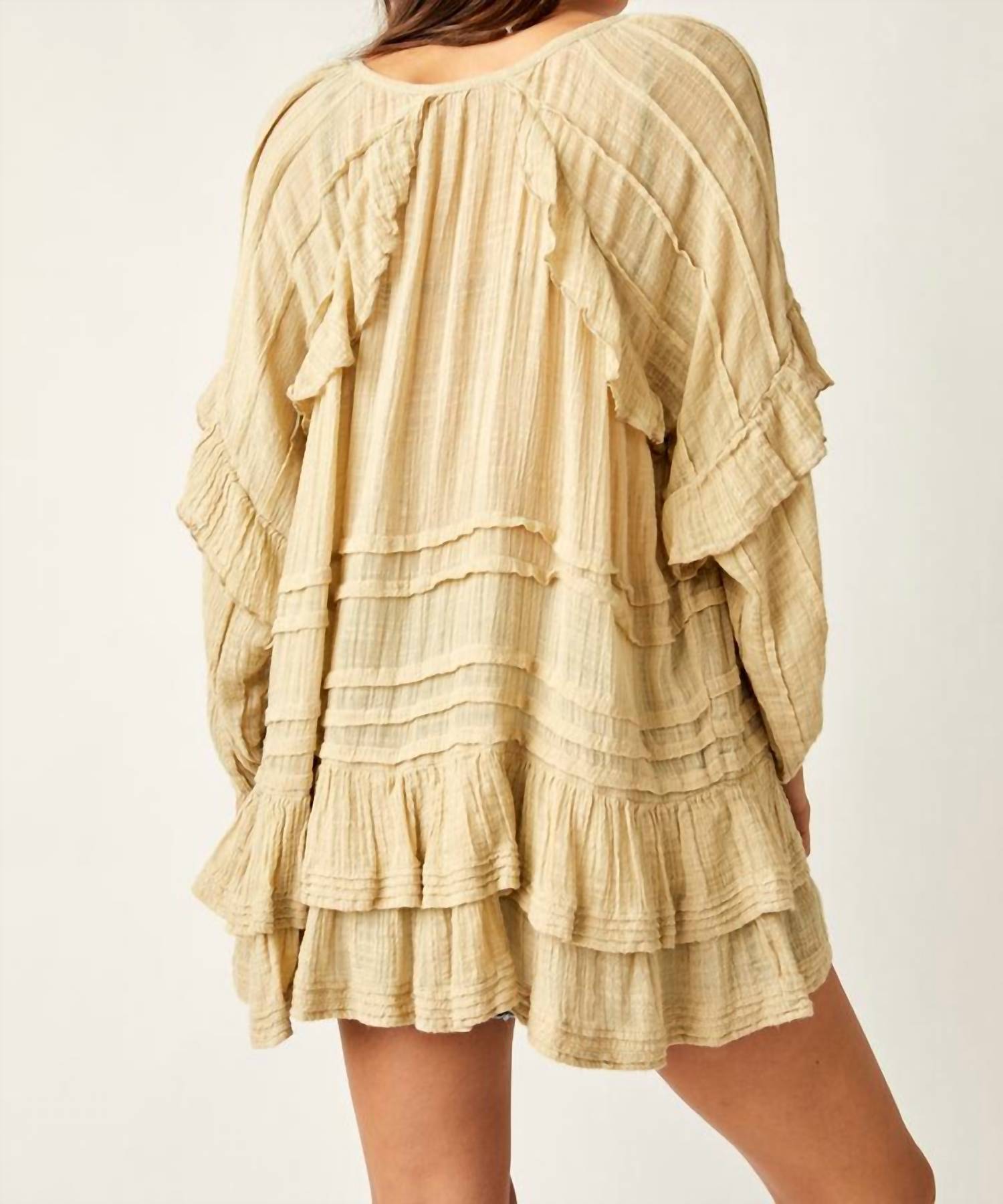 Forever free and flowy, this timeless tunic is featured in a drapey, relaxed fit with exaggerated ruffle detailing throughout and raw hems for a true lived-in look. Simply style it solo or pair it over a pant, this super versatile tunic is the ideal pick to take you from day to night, from season to season. 67% Cotton 33% Viscose.