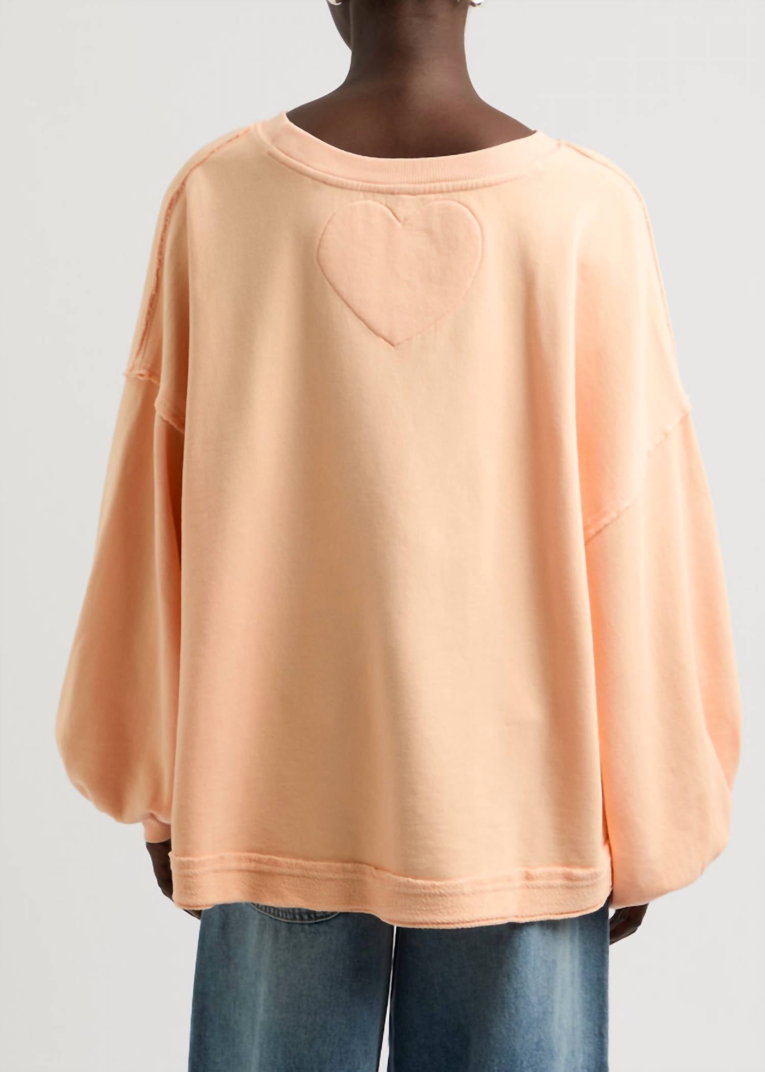 Designed to effortlessly blend comfort with style. Long-sleeve sweatshirt is crafted from 100% cotton for a soft and breathable feel. With a garment length of 25". Featuring a cozy crewneck. Provides a chic oversized fit highlighted by dropped shoulders and ribbed knit cuffs. Pull-on style with charming details like raw hemlines and exposed seams.