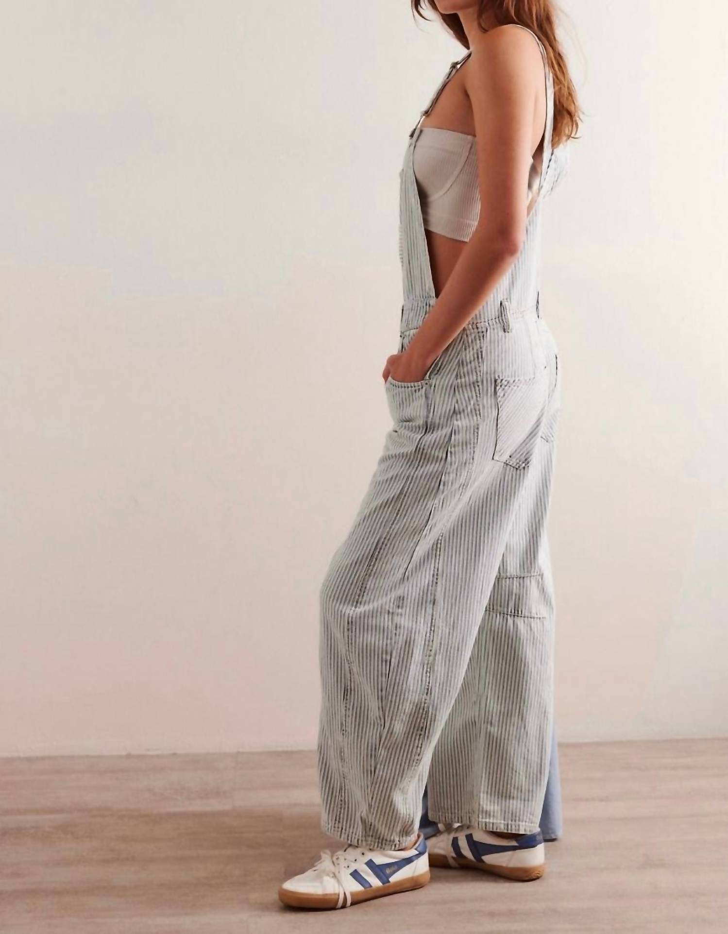 Easy, stylish and comfortable? We love a good pair of overalls. Step into effortless style with the We The Free Good Luck Striped Overalls by Free People, featuring a timeless indigo railroad stripe pattern. These women's overalls boast a bib-and-brace design with a wide barrel leg and a comfortable inseam of 26 inches. Made from 100% cotton, they feature practical front bib pockets and adjustable brace straps with button closure details. Originating from an in-house label inspired by vintage styles, these overalls combine heritage with a modern twist. Care for these fashion-forward overalls by machine washing them cold.
