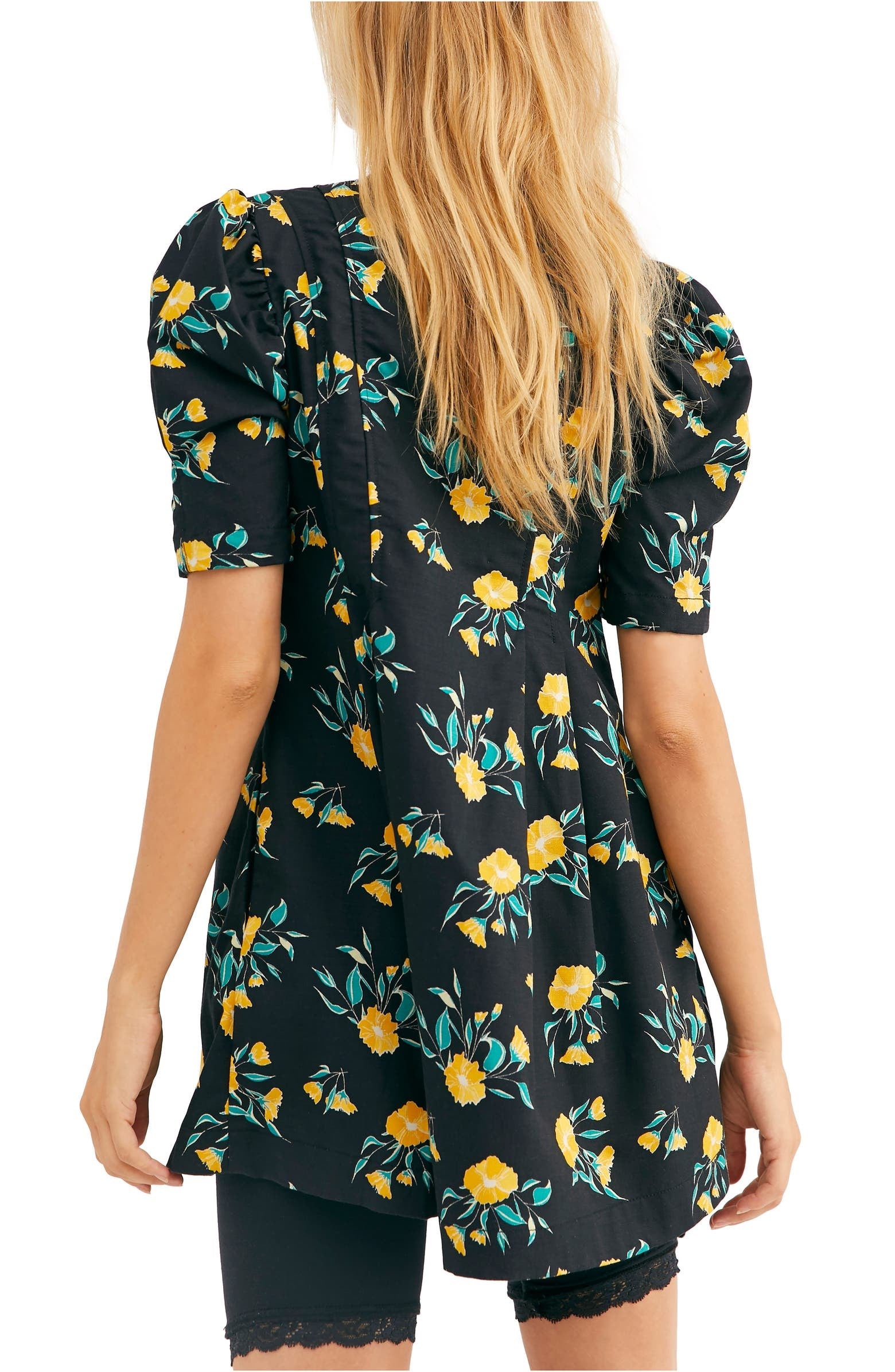 33 1/2" length (size Medium)|V-neck with front tie closure|Short sleeves|Side-seam pockets