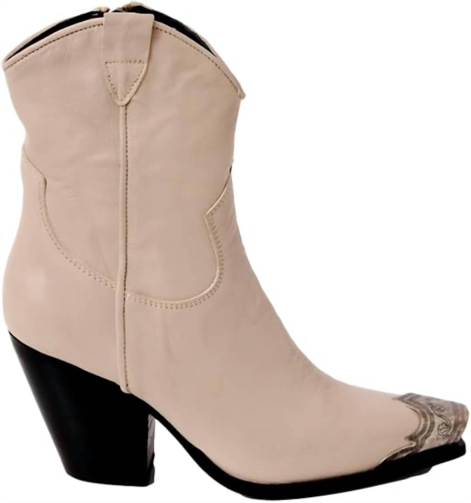 Step into sophistication with the Women's Brayden Western Boots by Free People, crafted in exquisite opal grey leather. These ankle boots feature a stylish block heel measuring 3.5 inches, perfect for adding height without sacrificing comfort. The medium width and pointed toe design ensure a sleek fit, ideal for the fashion-forward woman. Complete your look with these standout boots, made for adult women who appreciate quality and style.