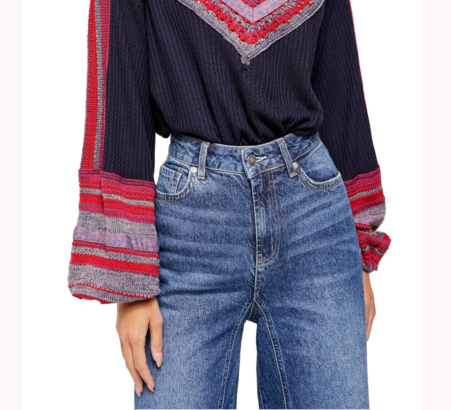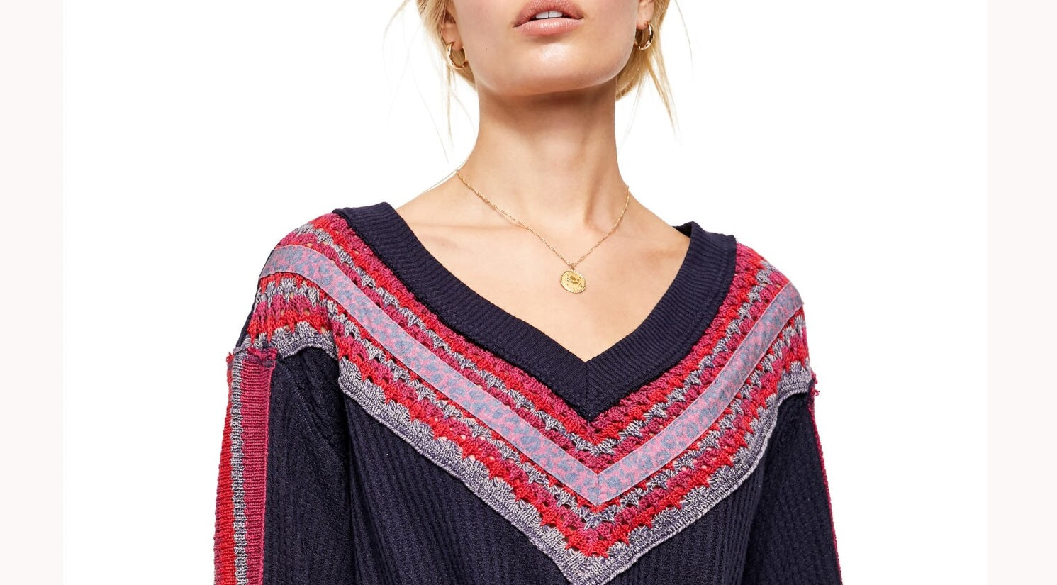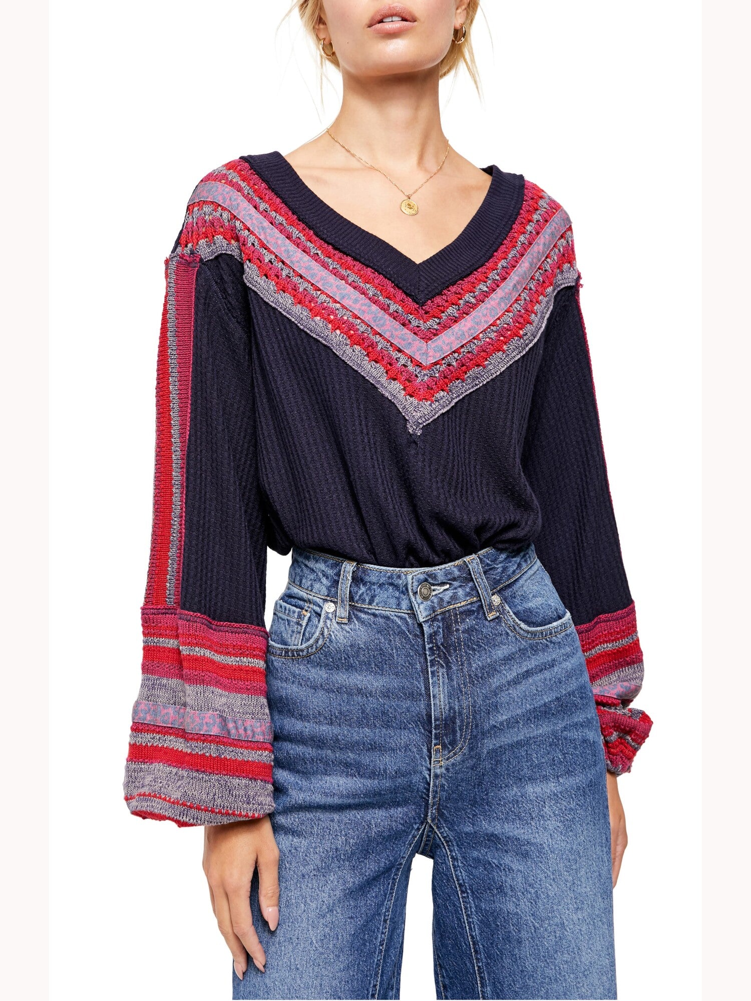 FREE PEOPLE|Style; Sweater|Occasion; Casual|Size; M|Material; Viscose|Color; Navy|V Neck