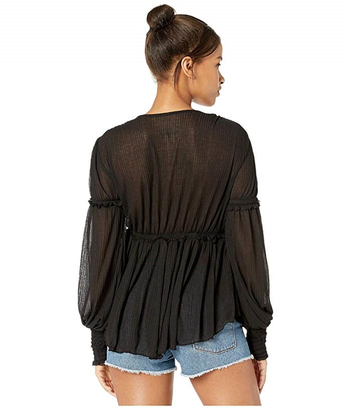 V-Neck|Sheer Ruffled Blouse|Long Sleeve|Polyester