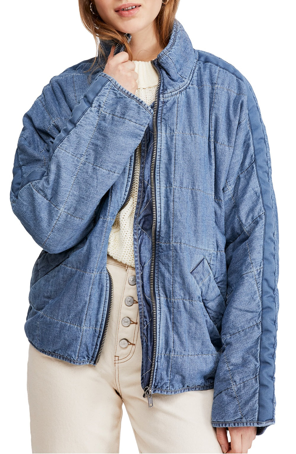 Free People Dolman Quilted Denim Jacket - Blue X-Small