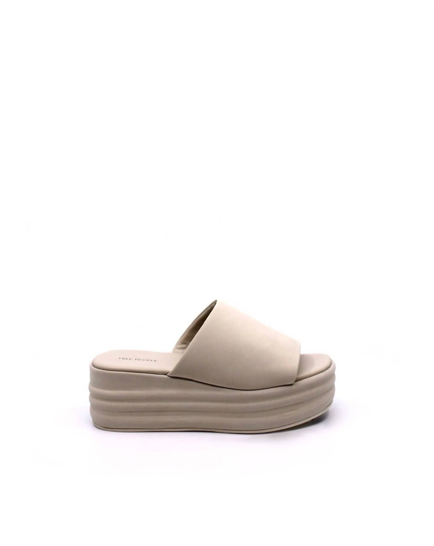 These retro-style sandals feature a mule design with a textured flatform sole. They have a cushioned insole, a wide leather strap, and a lightweight construction. The upper is made of imported leather, and the sole is rubber. The sandals are slip-on style and have an approximate 70mm (2.75-inch) platform. Imported.