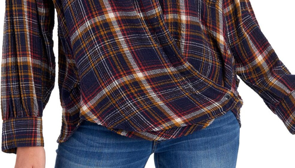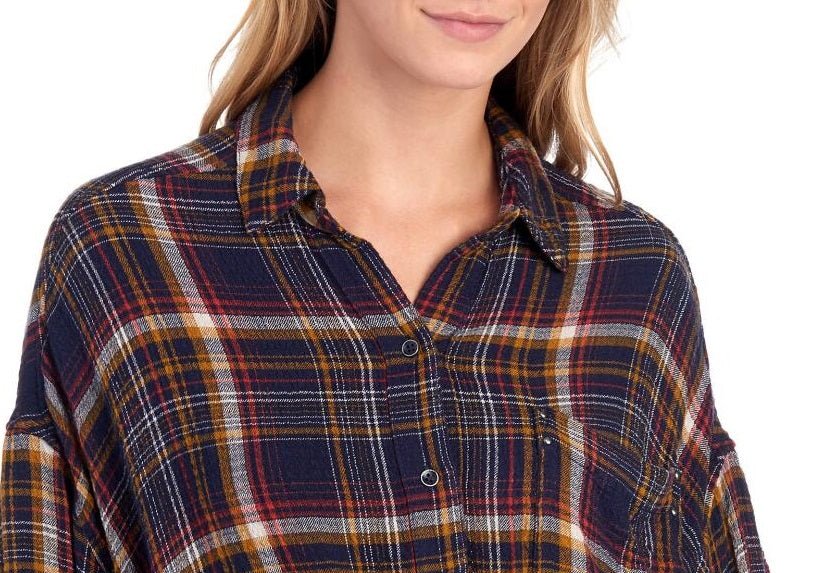 Free People Women's Hidden Valley Button Down Shirt Long Sleeve Blue Size X-Small