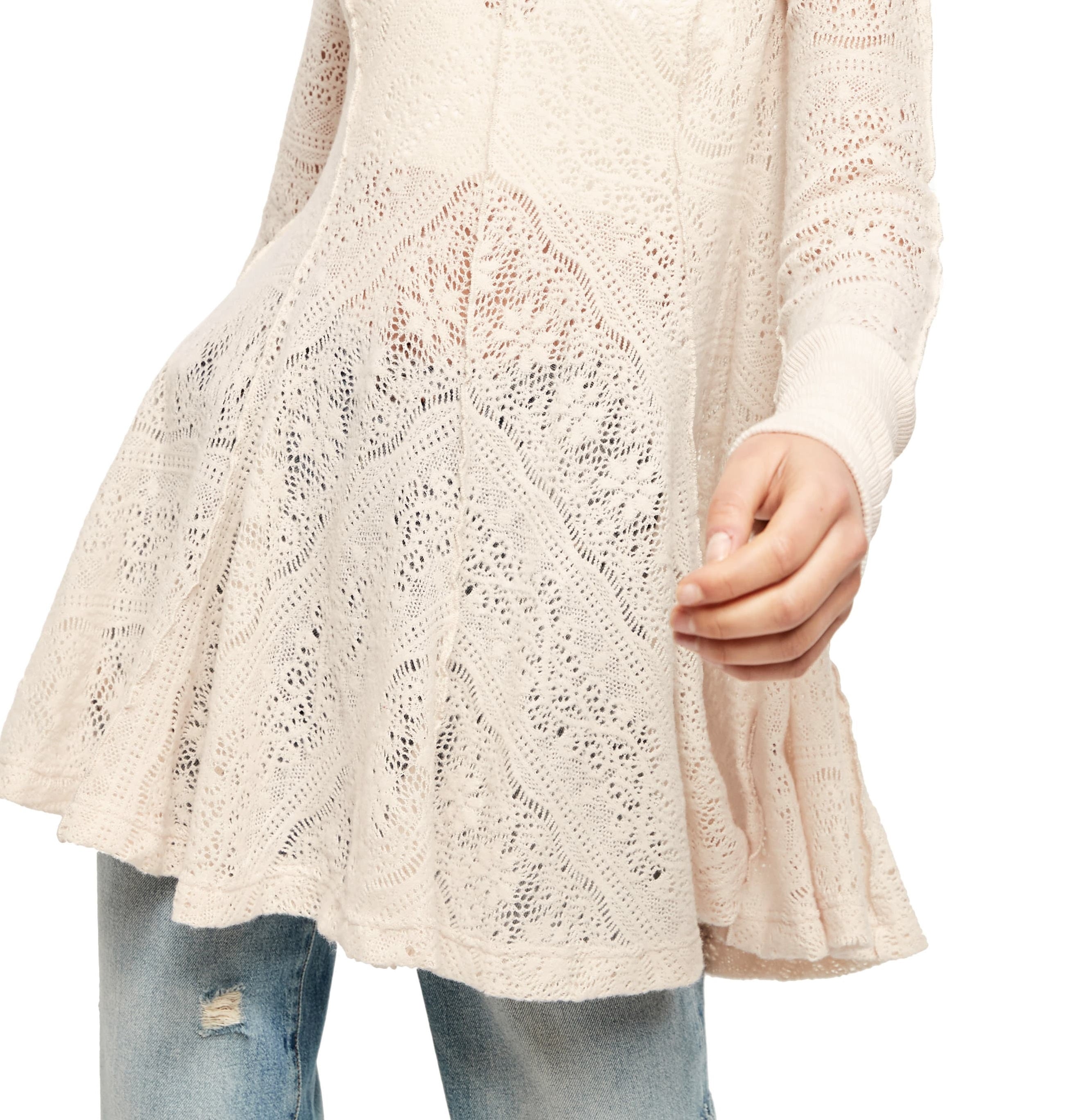FREE PEOPLE Womens Lace Long Sleeve Crew Neck Tunic Tunic Casual Top