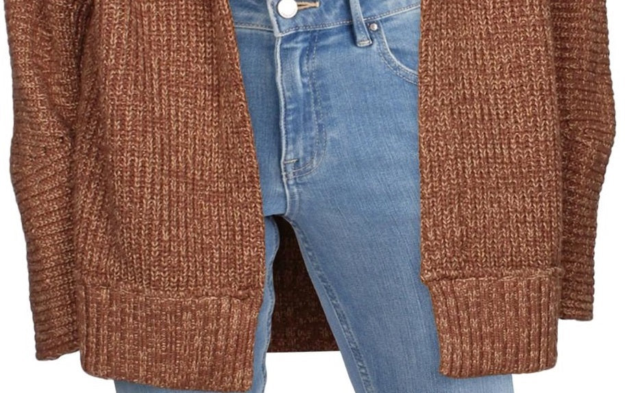 Free People Women's Marled Long Sleeve Cardigan Top Brown Size Large