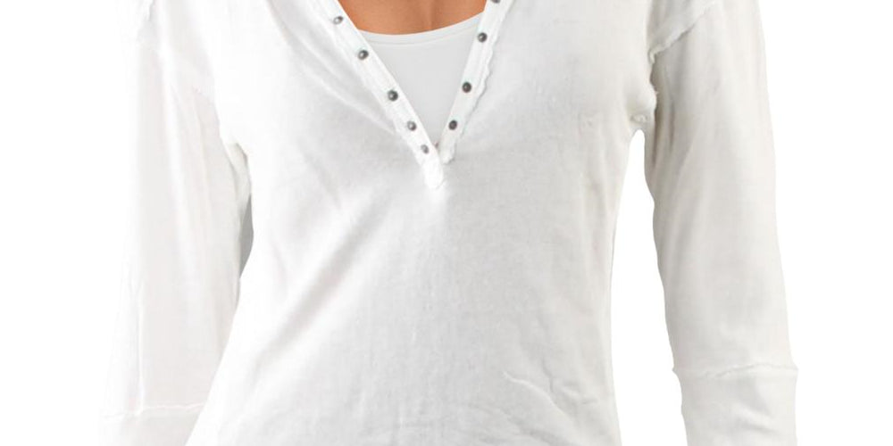 Free People Women's Military Mix Cotton Studded Henley Top White Size Medium