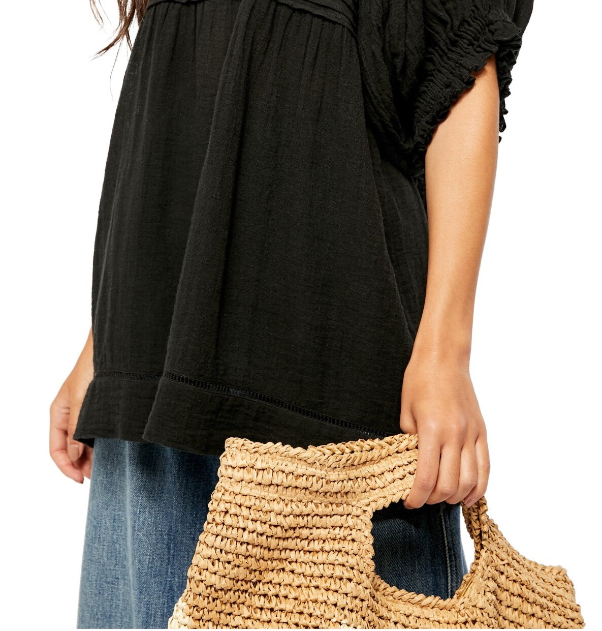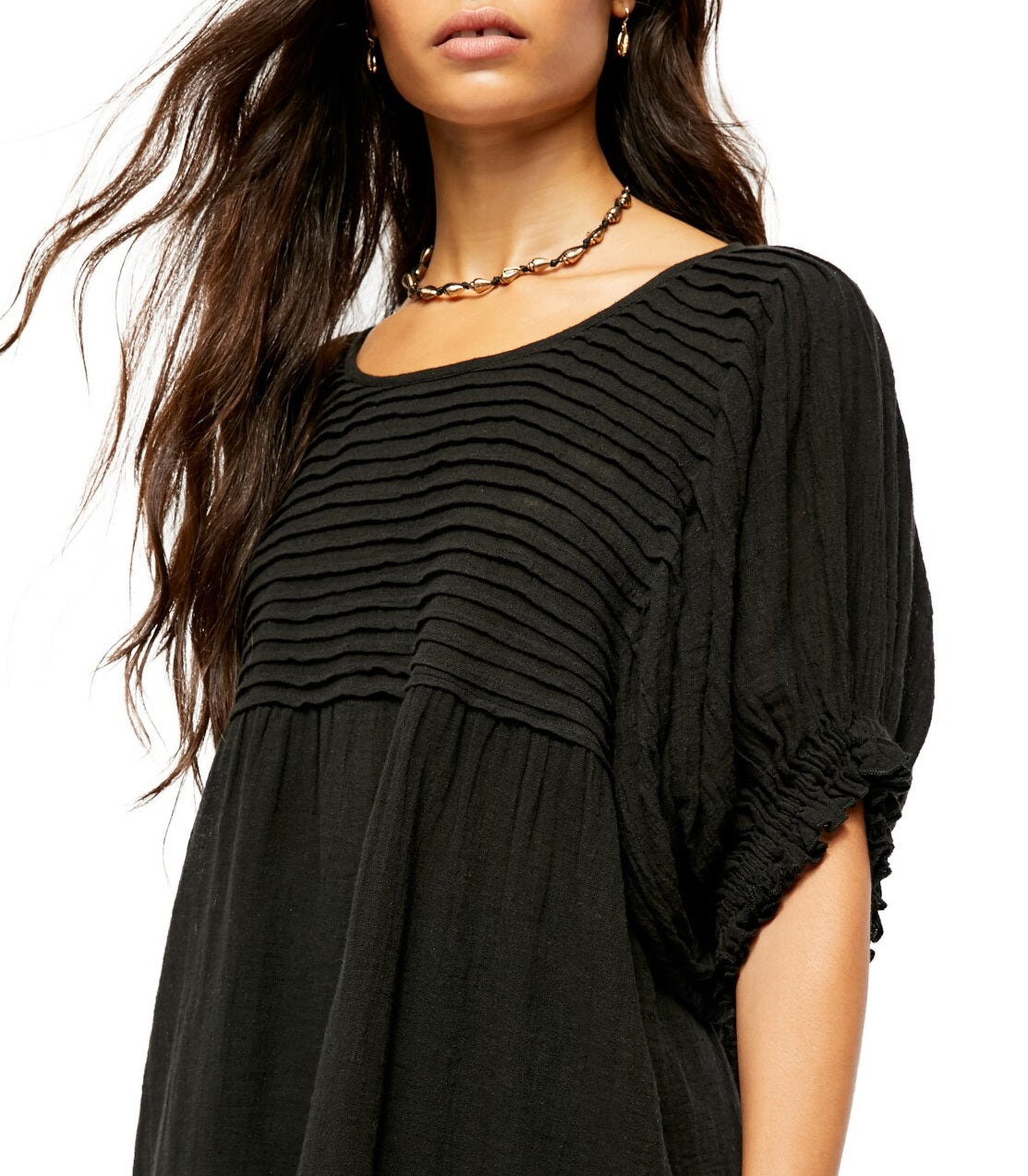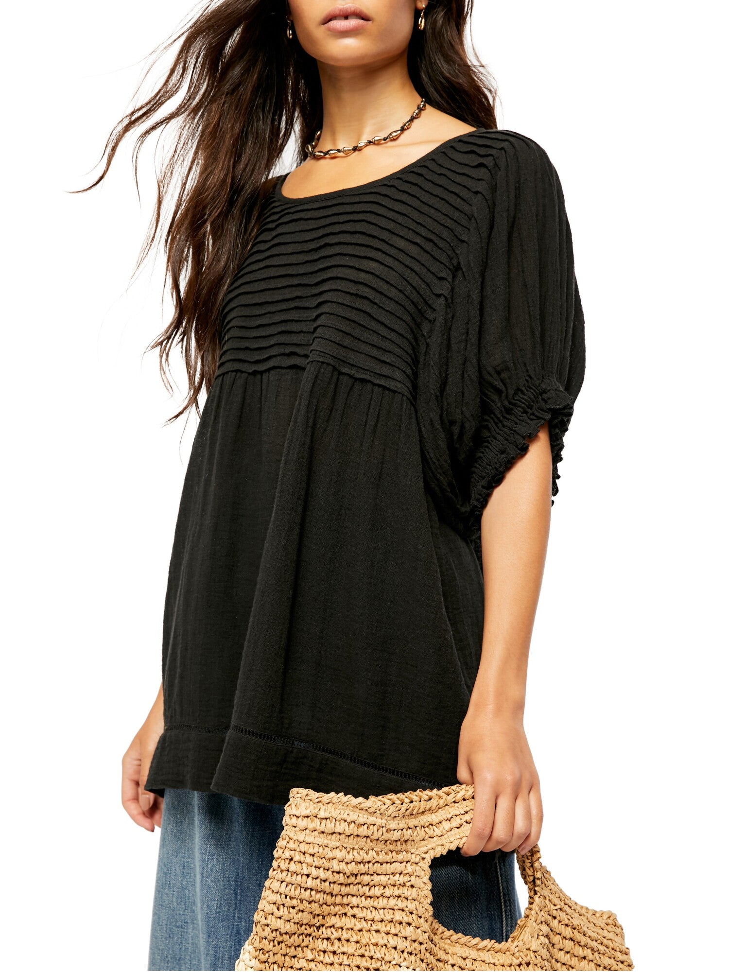 free people|style; top|occasion; casual|size; m|material; cotton blend|color; black|jewel neck