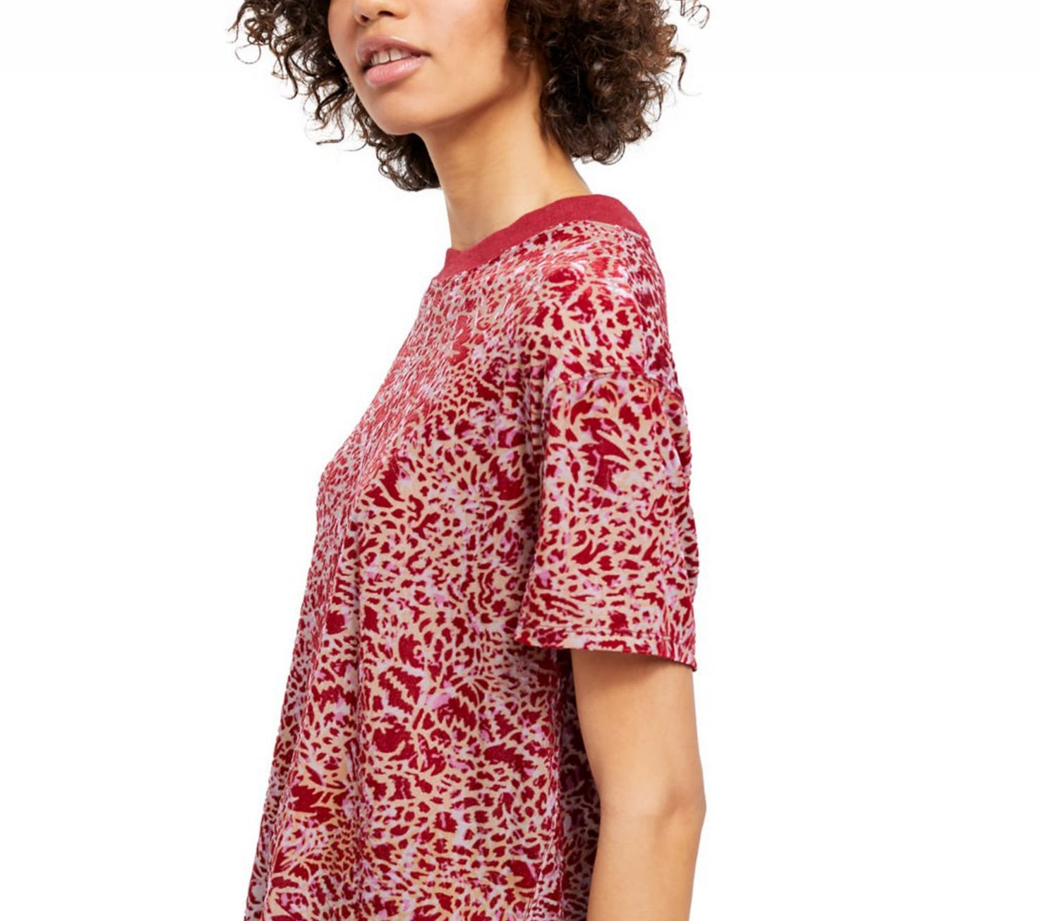 Free People Women's Printed Short Sleeve Crew Neck T-Shirt Top Red Size Small
