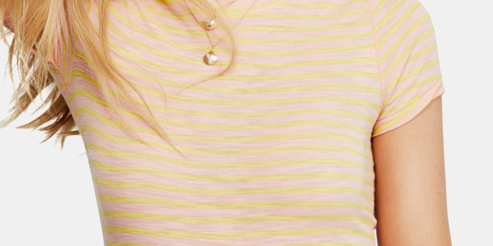 Free People Women's Striped Short Sleeve Crew Neck T-Shirt Pink Size Large