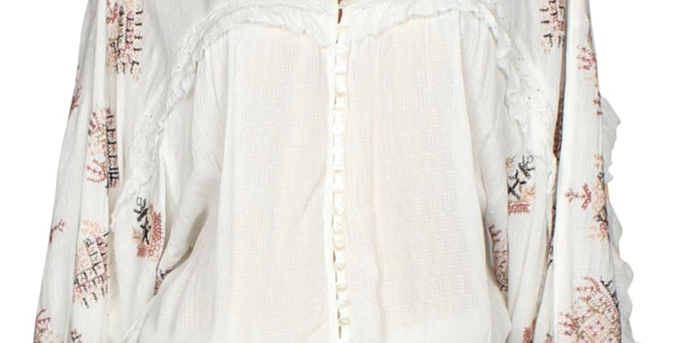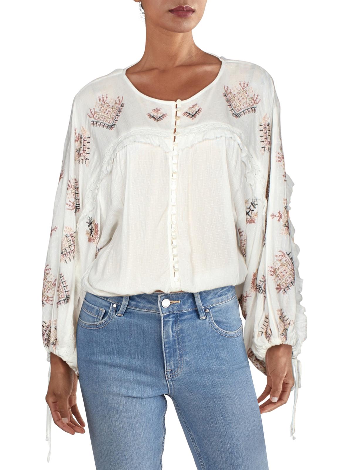 Free People Women's Sweet Emotion Emboidered Peasant Blouse White Size Large