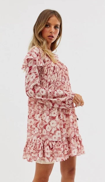 Free People Women's These Dreams Long Sleeve Mini Dress Red Size Medium