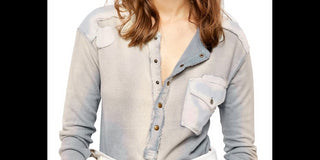 Free People Women's Gene Henley Shirt Navy Size Medium