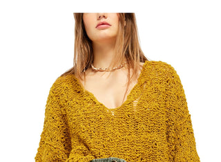 Free People Women's Textured V Neck Sweater Size Yellow Size Large