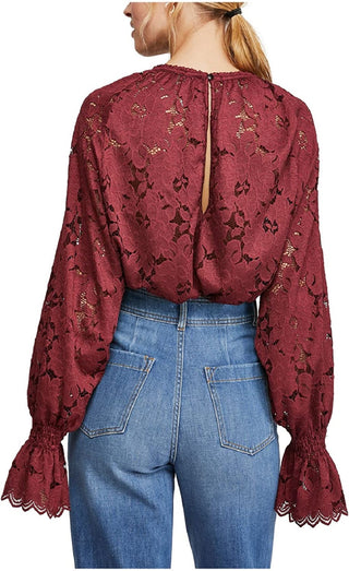 Free People Women's Olivia Lace Tee Red Size Medium