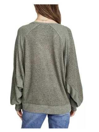 Free People Women's Long Sleeve V Neck Top Green Size X-Small