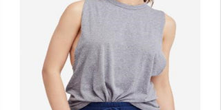 Free People Women's Scalloped Scoop Neck Crop Top Gray Size Large