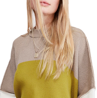 Free People Women's Color Block Long Sleeve Mock Sweater Green Size Large