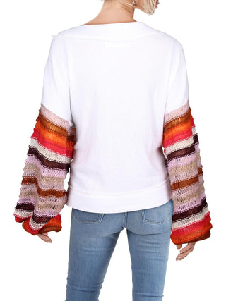 Free People Women's Striped Bell Sleeve Jewel Neck Top White Size X-Small