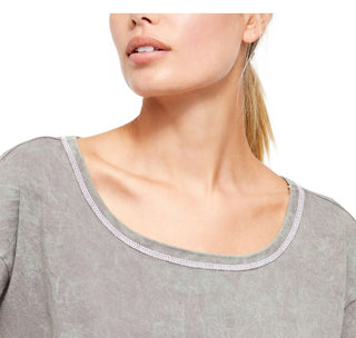 Free People Women's Ruffled Cap Sleeve Crew Neck Crop Top Gray Size Large