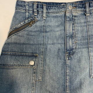 Free People Women's Frayed Pocketed Mini Skirt Blue Size 24