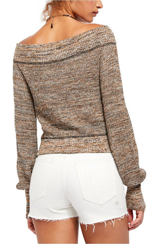 Free People Women's Sugar Rush Off the Shoulder Sweater Verbena Combo - All Brown Size M