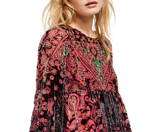 Free People Women's Long Sleeve Above the Knee Empire Waist Dress Red Size Medium