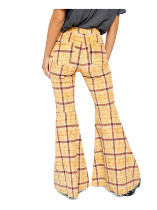 Free People Women's Plaid Wide Leg Pants Yellow Size 28