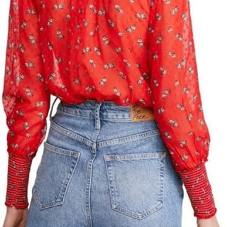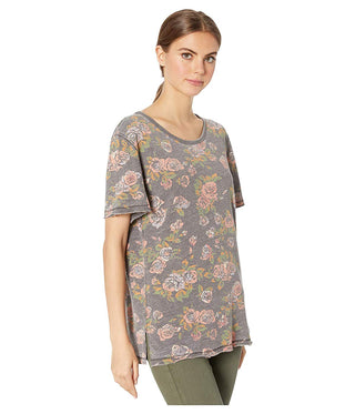 Free People Women's Tourist Floral Print Short Sleeve T-Shirt Pink Size Large
