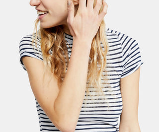 Free People Women's Striped Short Sleeve Crew Neck T-Shirt Blue Size X-Small