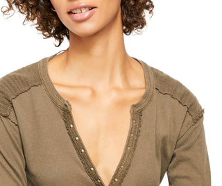Free People Women's Emma Eyelet Button Down Blouse Green Size X-Small