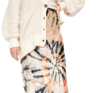 Free People Women's Serious Swagger Tie Die Velvet Skirt Beige Size Small
