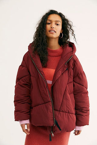 Free People Women's Hailey Hooded Puffer Jacket Red Size Small