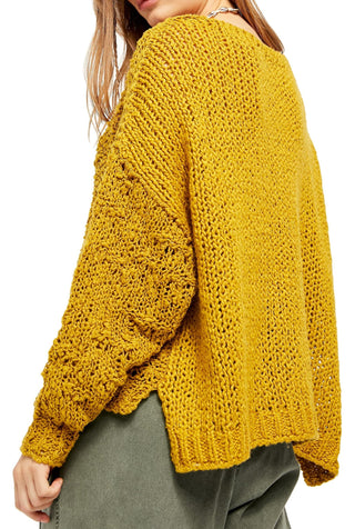 Free People Women's Textu Long Sleeve V Neck Sweater Yellow Size M