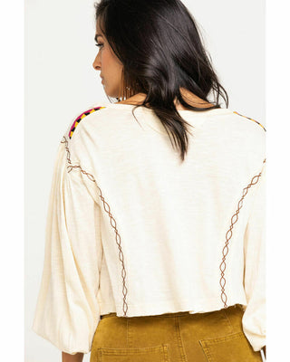 Free People Women's Cool Meadow Cotton Peasant Blouse White Size Medium