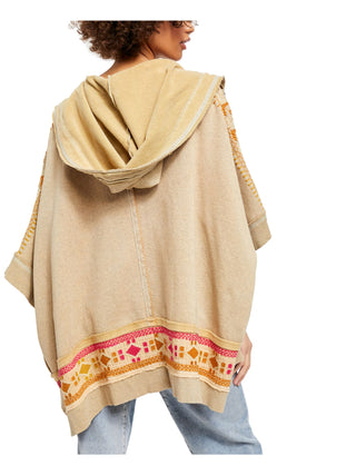 Free People Women's 3/4 Sleeve Hooded PONCHO Sweater Brown Size X-Small