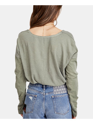 Free People Women's Scoop Neck Snap Detail Sienna T-Shirt Green Size Small