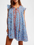 Elevate your summer wardrobe with the Sundown Mini Dress by Free People, a boho-chic masterpiece in alluring blue floral. This cotton blend dress features cap sleeves, a high square neckline, and a button-front style for an effortlessly flattering a-line silhouette. Perfect for any music festival, it boasts a unique dropped waist and textured fabrication that transition seamlessly from booted layers to casual sandals. Closure: Button closure. Care: Machine wash cold.