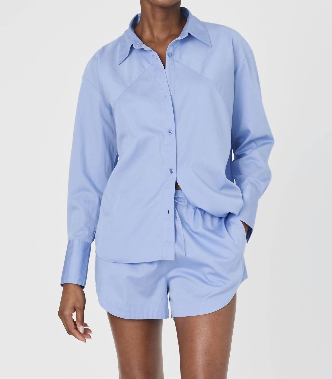 The perfect long sleeve tee that goes with just about anything. Elevate your wardrobe with the Alexis Cotton Top by French Connection, a must-have in timeless Oxford Blue. This women's tee boasts long sleeves and a classic collar, offering a sophisticated yet effortless look. Crafted from pure cotton, it features a button closure that adds a touch of elegance to the solid design. Please note, specific care instructions are not provided.