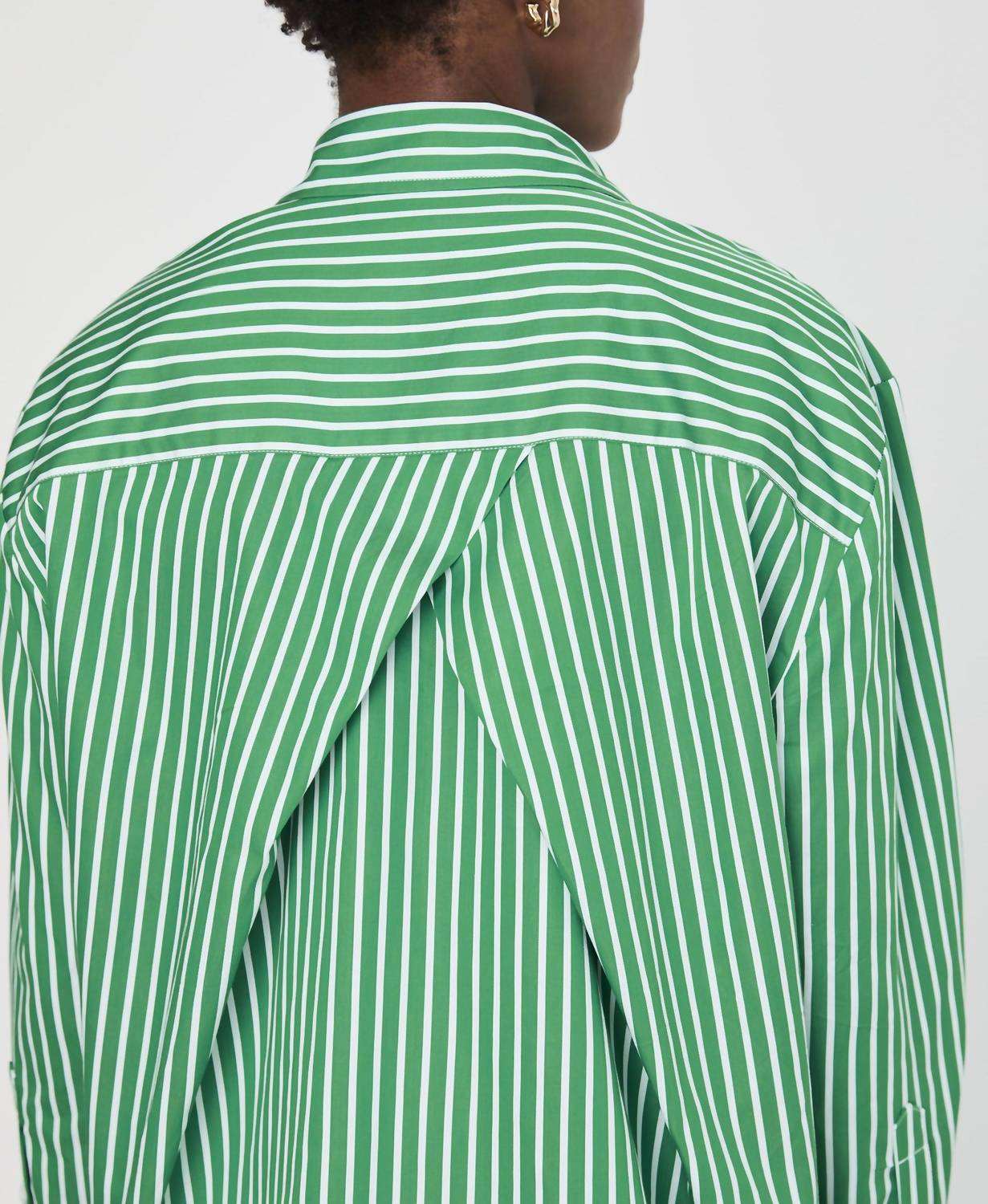 The Alexis Cotton Top by FRENCH CONNECTION brings a chic touch to your wardrobe with its green and white stripe pattern. Crafted from soft cotton, this women's button-down shirt features long sleeves and a classic collar neckline for a timeless look. Closure: Button closure. Care: Machine wash and line dry.