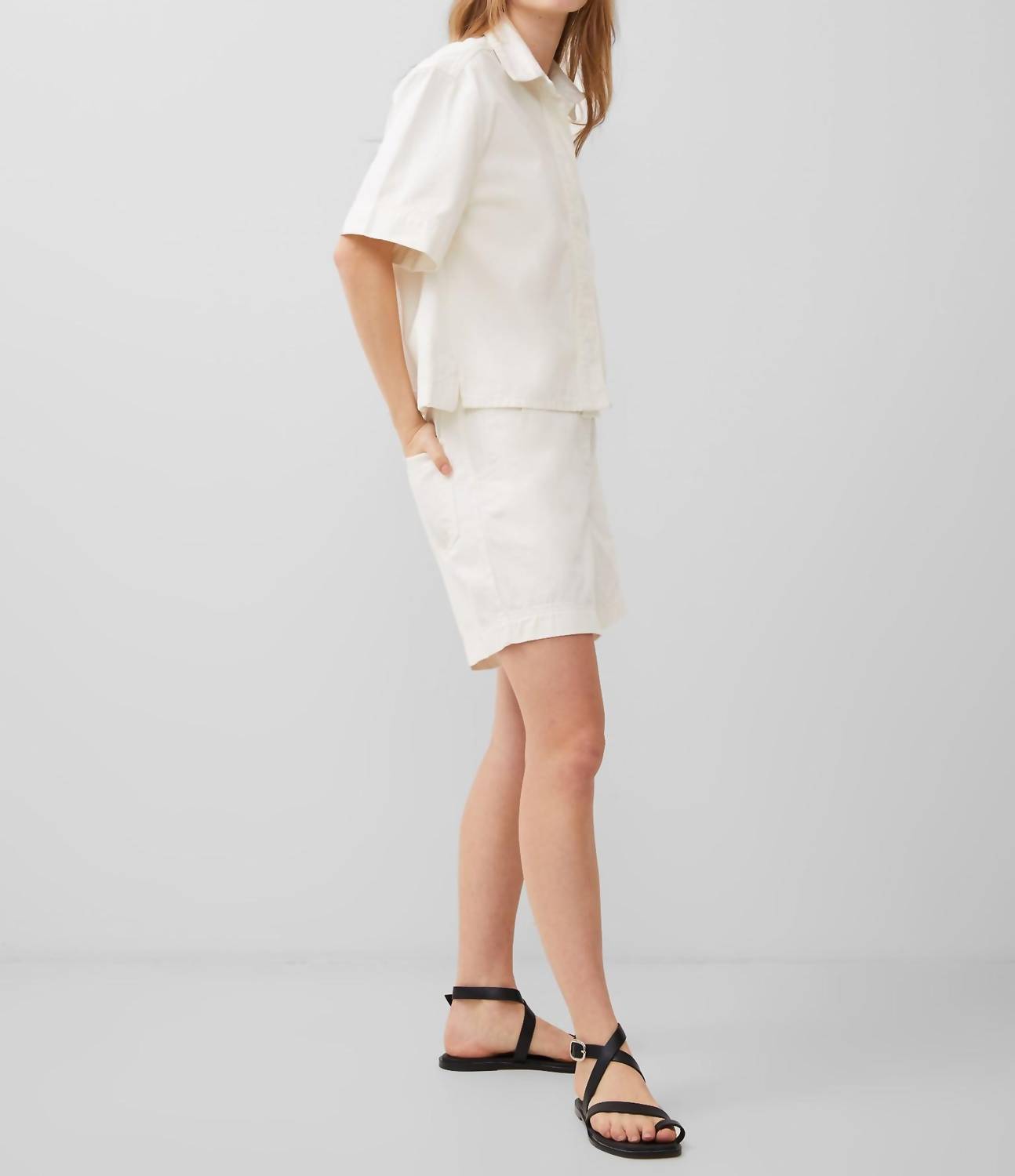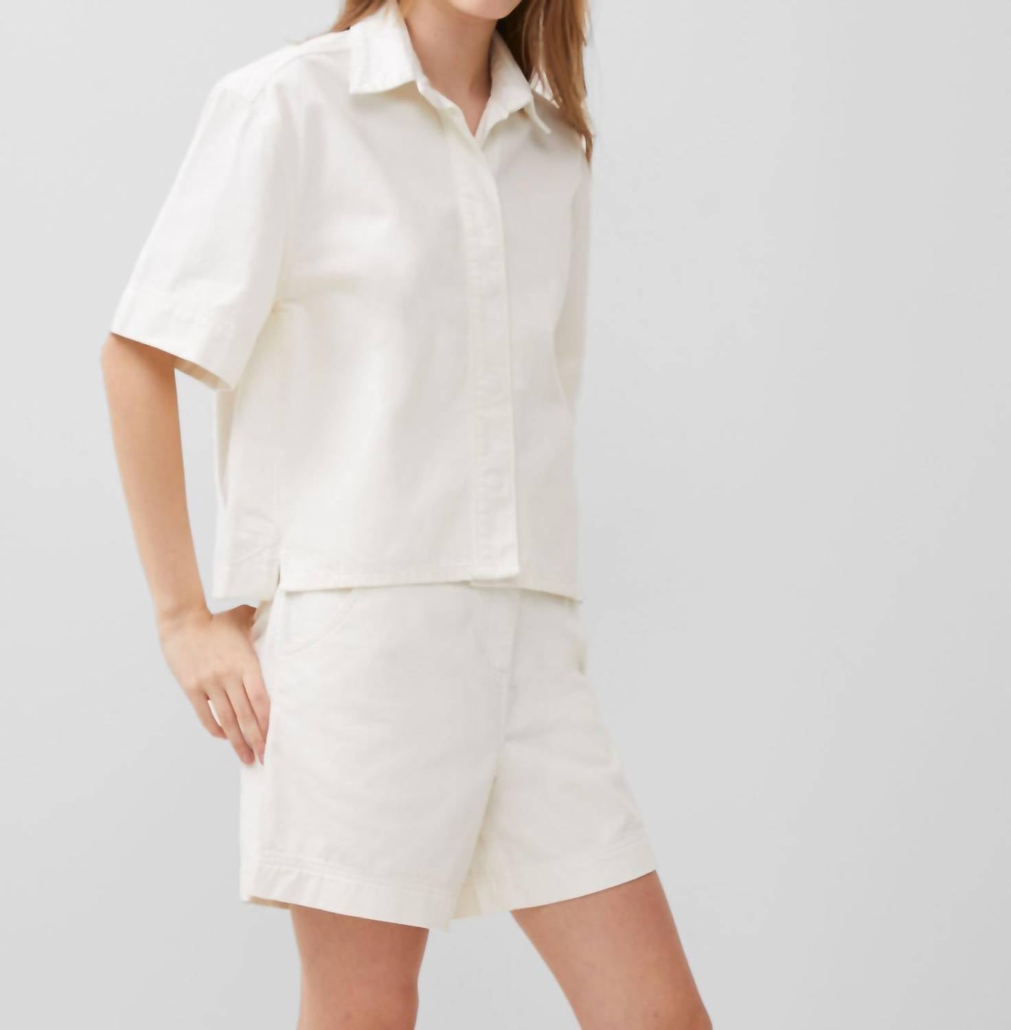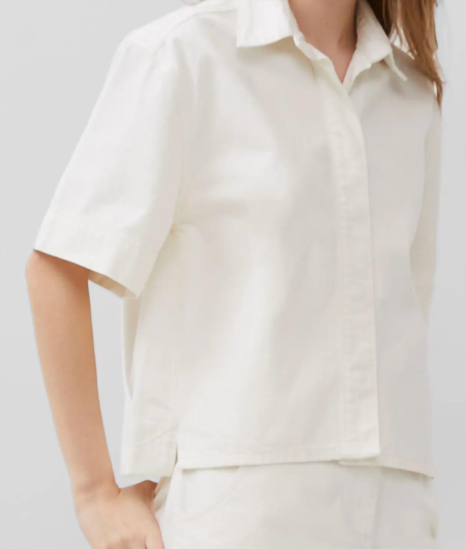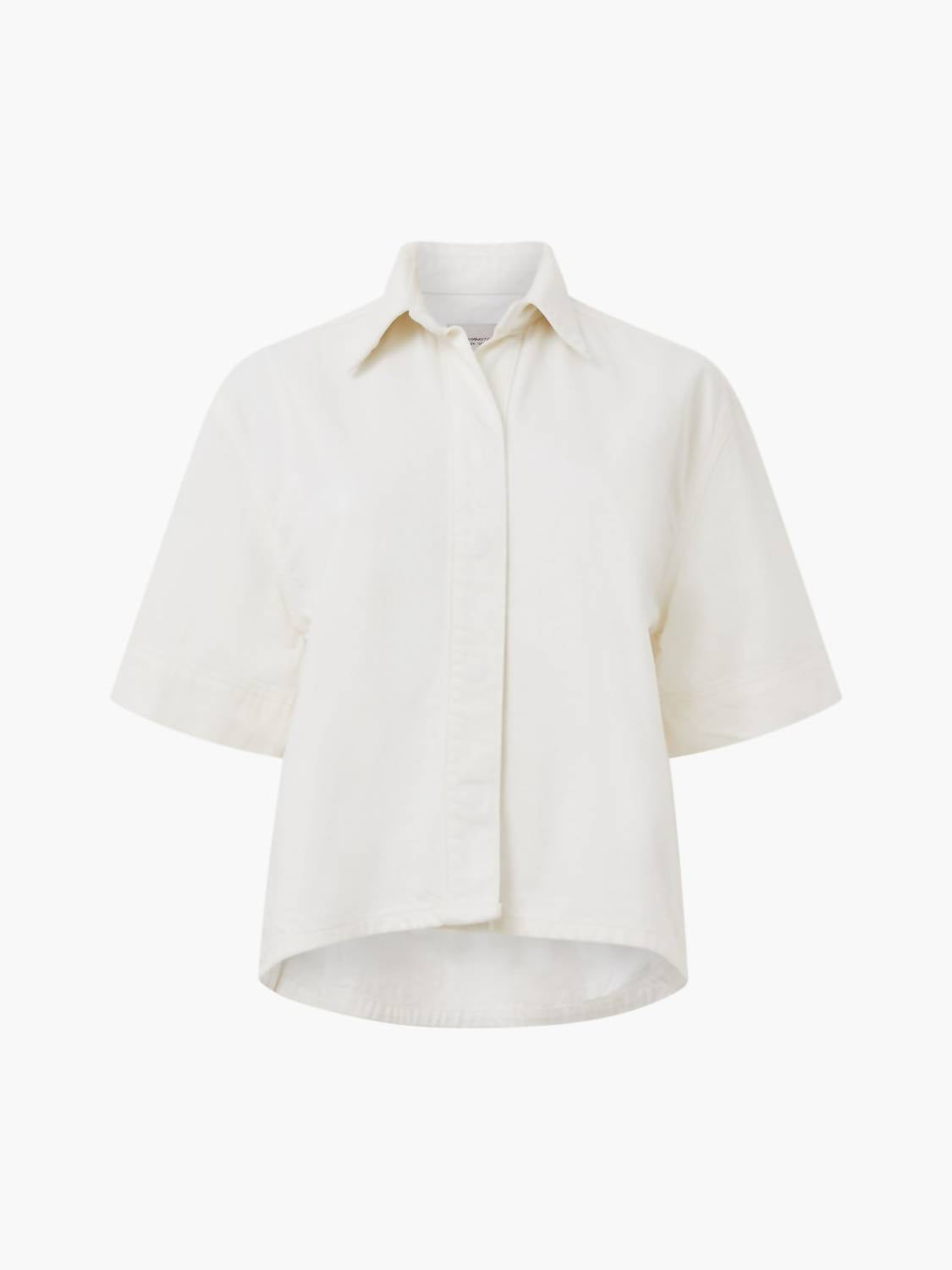 A timeless blouse that will never go out of style. Introducing the Finley Denim Shirt by French Connection, a chic addition to your wardrobe in a timeless white hue. This blouse features short sleeves and a stylish collar, perfect for casual and smart-casual occasions. Crafted with a convenient button closure, it's both practical and fashionable. Care instructions include machine wash and laying flat to dry for lasting quality.
