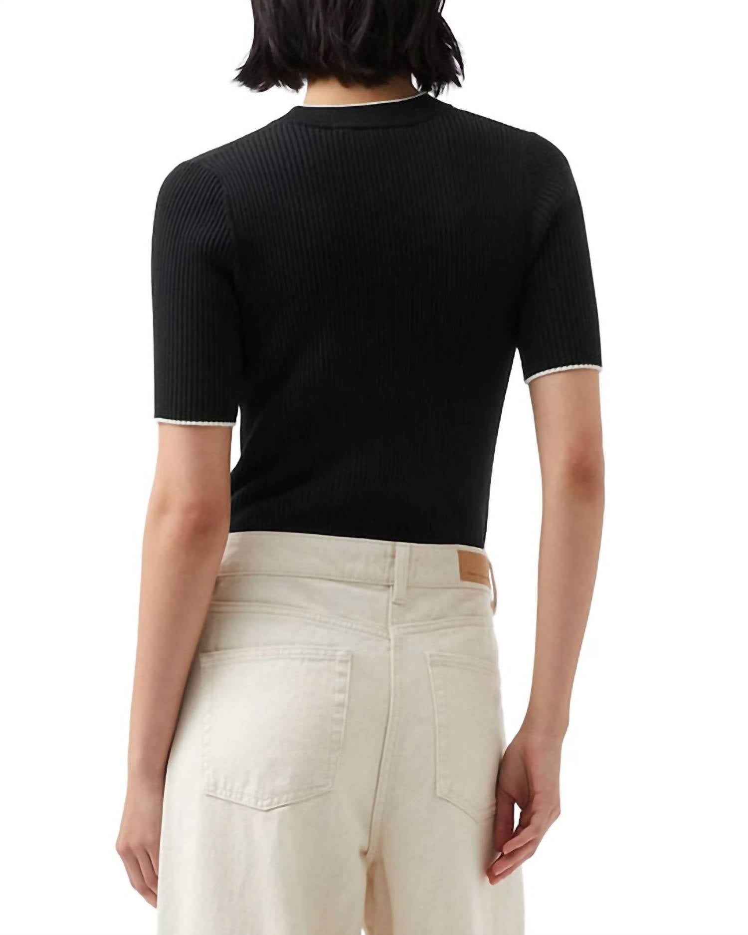 The ultimate go-to sweater, expertly crafted to provide the perfect combination of warmth and style. Its classic design and soft fabric make it a must-have addition to your wardrobe. Elevate your wardrobe with the Mozza Short Sleeve Sweater by FRENCH CONNECTION, a versatile piece ideal for all seasons. This women's slim-fit rib knit sweater is crafted from a soft, light cotton blend, providing comfort and style. The design features short sleeves, a classic crewneck, and contrasting hems, perfect for a timeless look in cream. It comes with a convenient pull-on closure and is easy to care for with machine wash instructions.
