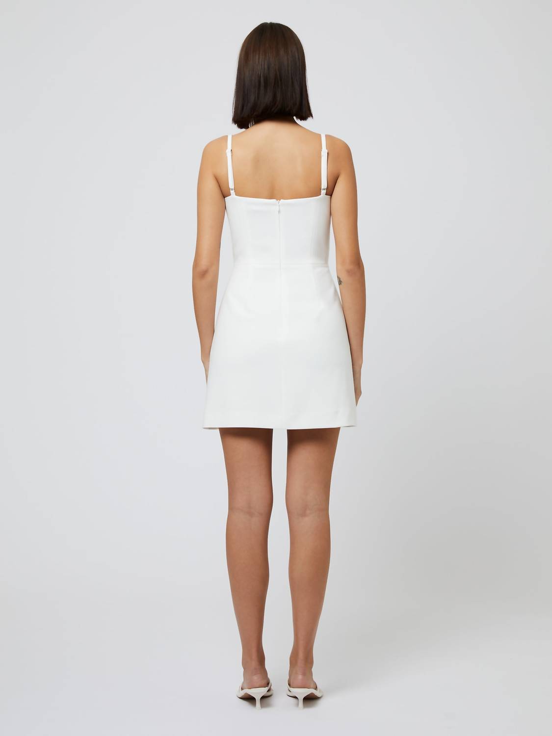 A dress you'll be reaching for season after season. Pair it with your favorite denim jacket for a more laid-back look. Elevate your summer wardrobe with the Whisper Foldover Mini Dress by French Connection, a minimalist sheath in a solid summer white. Featuring spaghetti straps and a sophisticated v-neckline, this asymmetrical piece is crafted from polyester and offers a chic silhouette. It boasts a convenient zip closure and is designed for effortless elegance, whether styled with delicate jewelry or a statement clutch. Care: Machine wash for easy maintenance.