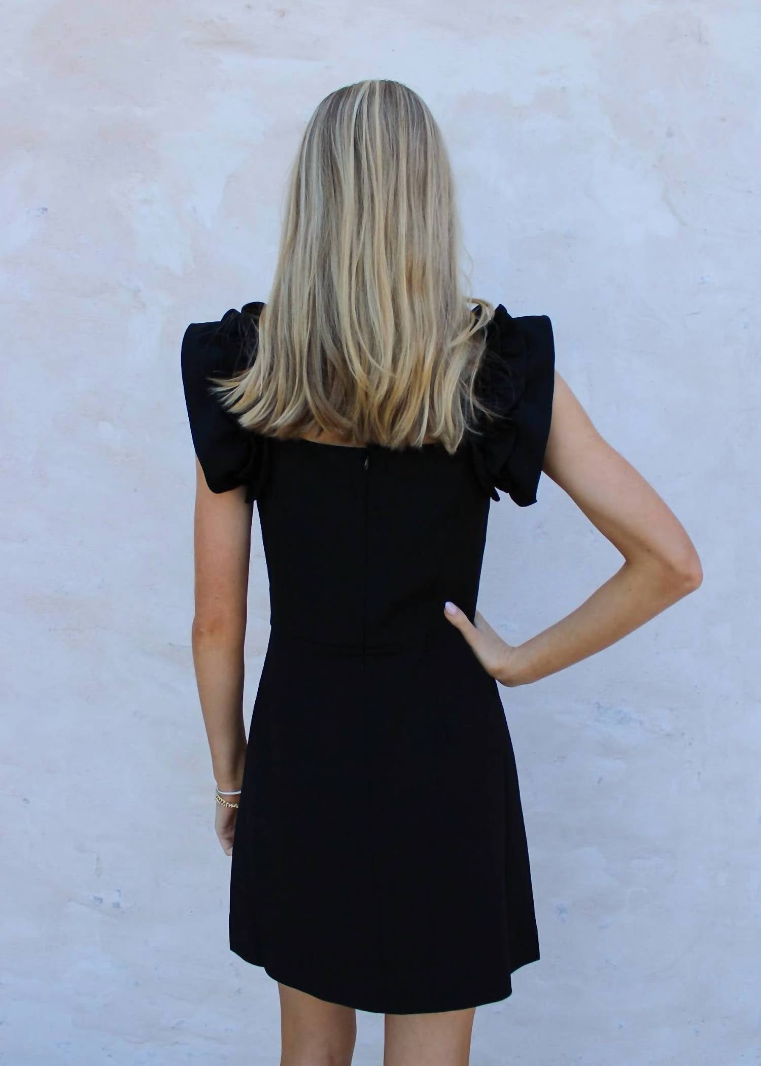 The perfect mini dress for those warmer months. Unveil your playful side with the Whisper Sleeveless Ruffle Shoulder Dress by French Connection, a chic addition to any wardrobe. This stylish piece comes in a soft, smooth black polyester with frilled straps that add a seasonal flair. Its sleeveless design and regular fit are complemented by a classic crewneck, making it perfect for everyday elegance. Size small measures a convenient 56cm in length, perfect for pairing with your favorite shoes for a complete look. Model stands at 5ft10" wearing a Size S.