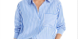 French Connection Women's Thick Stripe Relaxed Fit Shirt Blue Size S