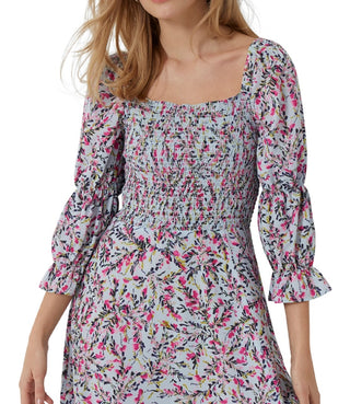 French Connection Women's Flores Verona Empire Waist Crepe Dress Blue Size Medium